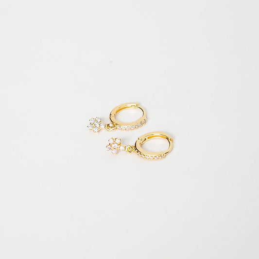 Argola zirconia flor dourada