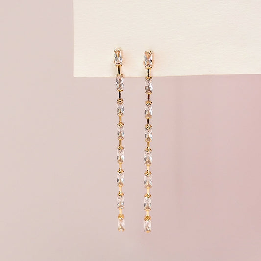 Brinco longo navete dourado