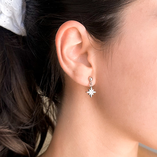 Brinco estrela da sorte prateada