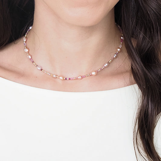 Choker perolas rosa lilás