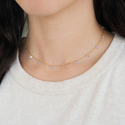 Choker zirconia lilás dourada