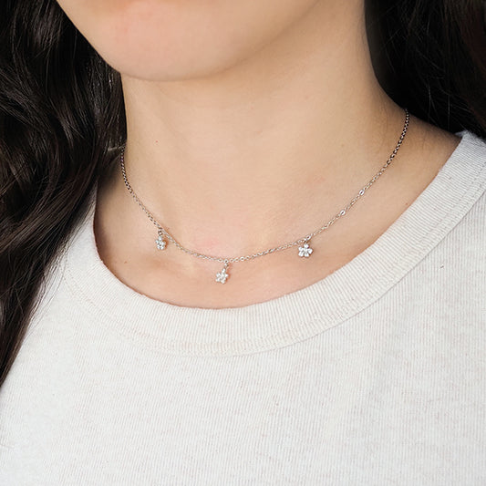 Colar florzinhas zirconia prateado