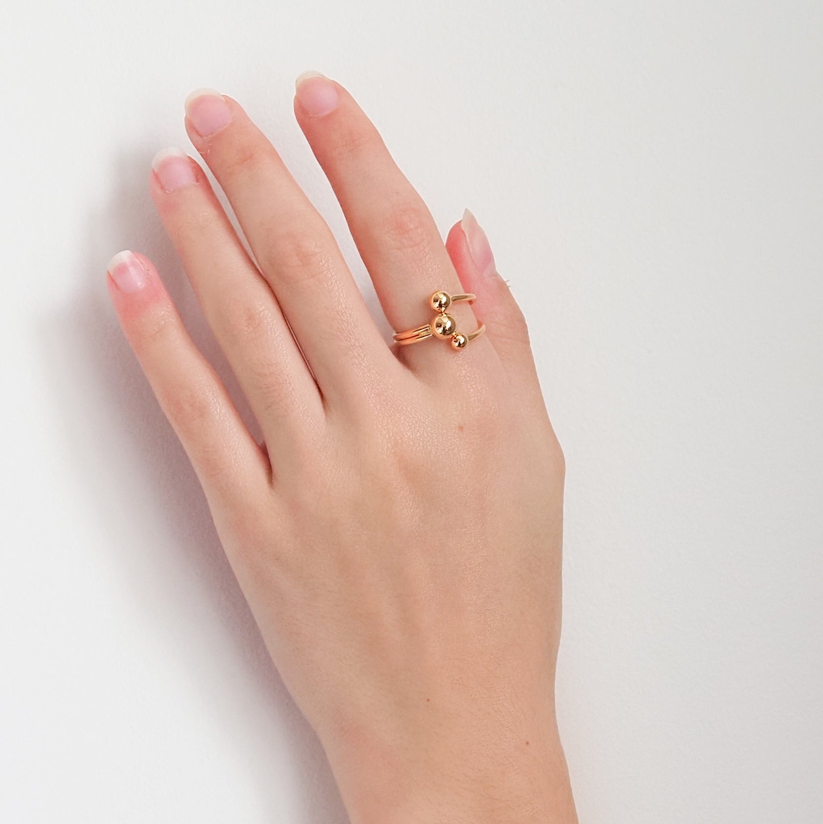 Anel três bolinhas dourado é uma semijoia ajustável e banhada com 10 camadas de ouro amarelo 18k. Possui uma alta qualidade e não contém níquel nem outras substâncias alérgicas. Seu design elegante é resistente e ao mesmo tempo delicado, é ideal para uso diário.