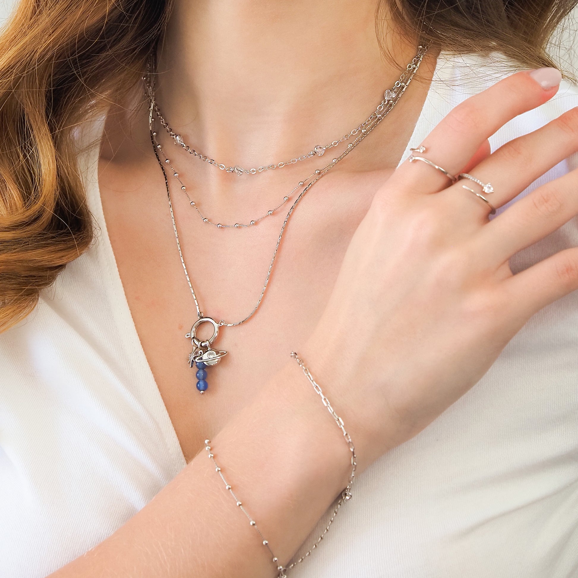 O nosso pingente planeta é banhado em ródio branco sem níquel. Ele é perfeito para compor com outros pingentes no seu colar charms