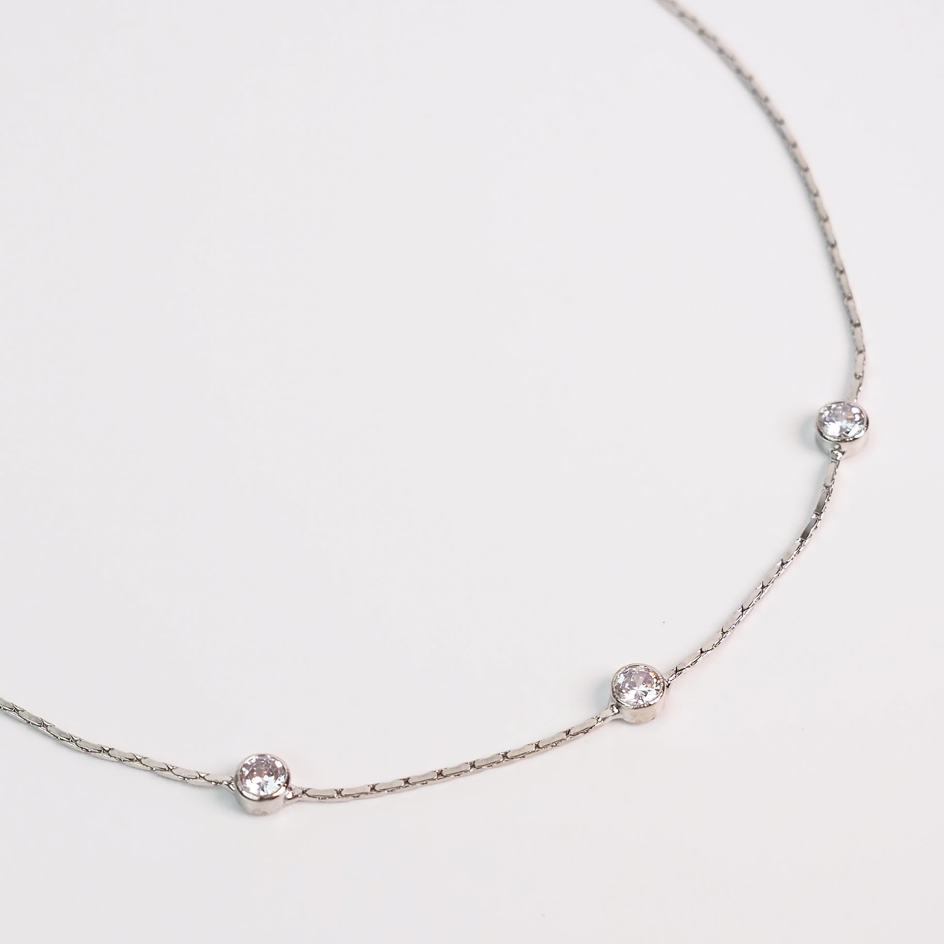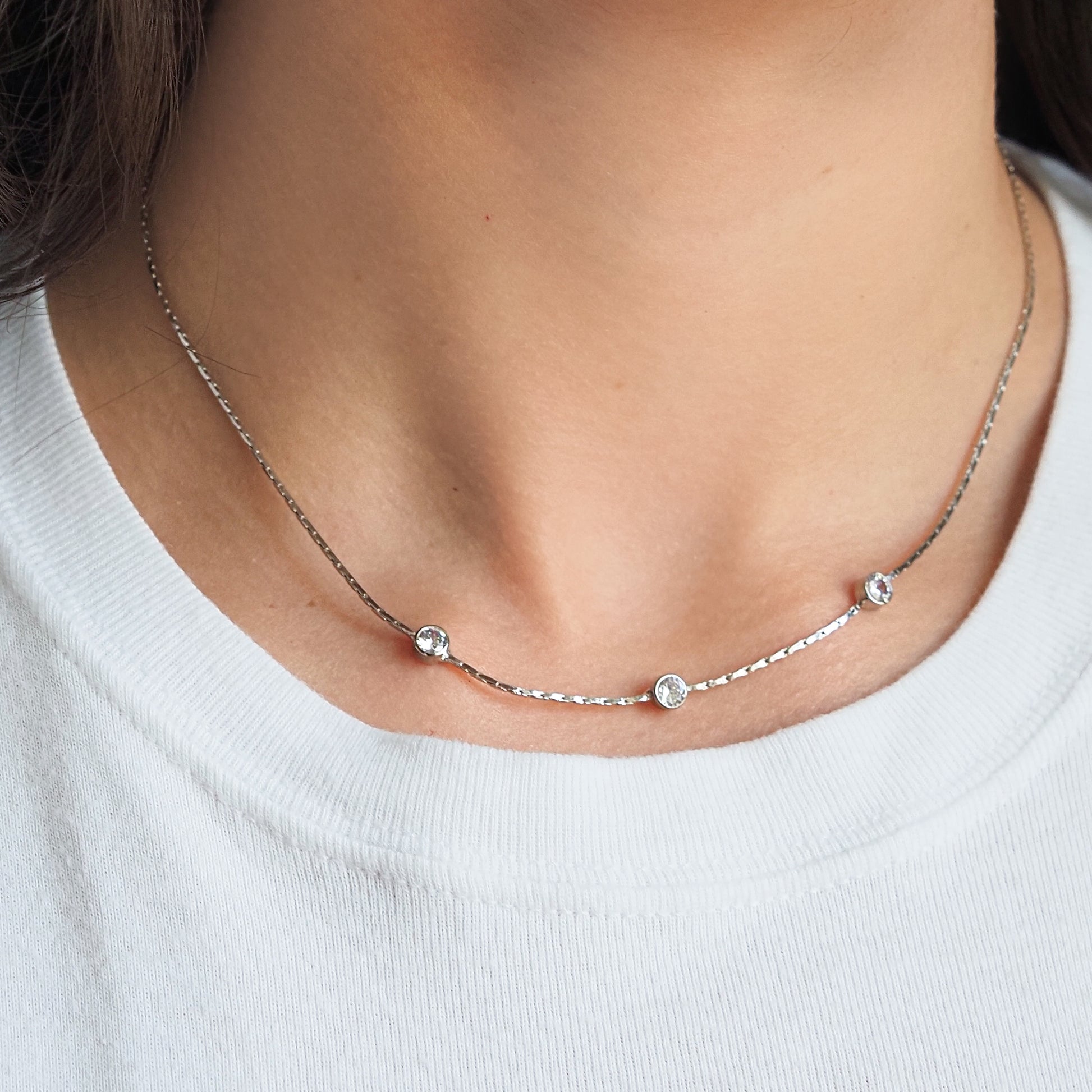 O Colar brilhante prateado, é uma semijoia que vem com um extensor de 10 cm, permitindo transformá-la facilmente em um colar de até 45cm. Banhada com ródio branco, esta peça delicada é livre de níquel e hipoalergênica, garantindo conforto o dia todo. Possui pingentes de zircônia, o que adiciona um toque de brilho ao colar. Perfeita para criar combinações incríveis com outras peças Margê Atelier, ela é ideal para complementar desde looks casuais até ocasiões especiais.