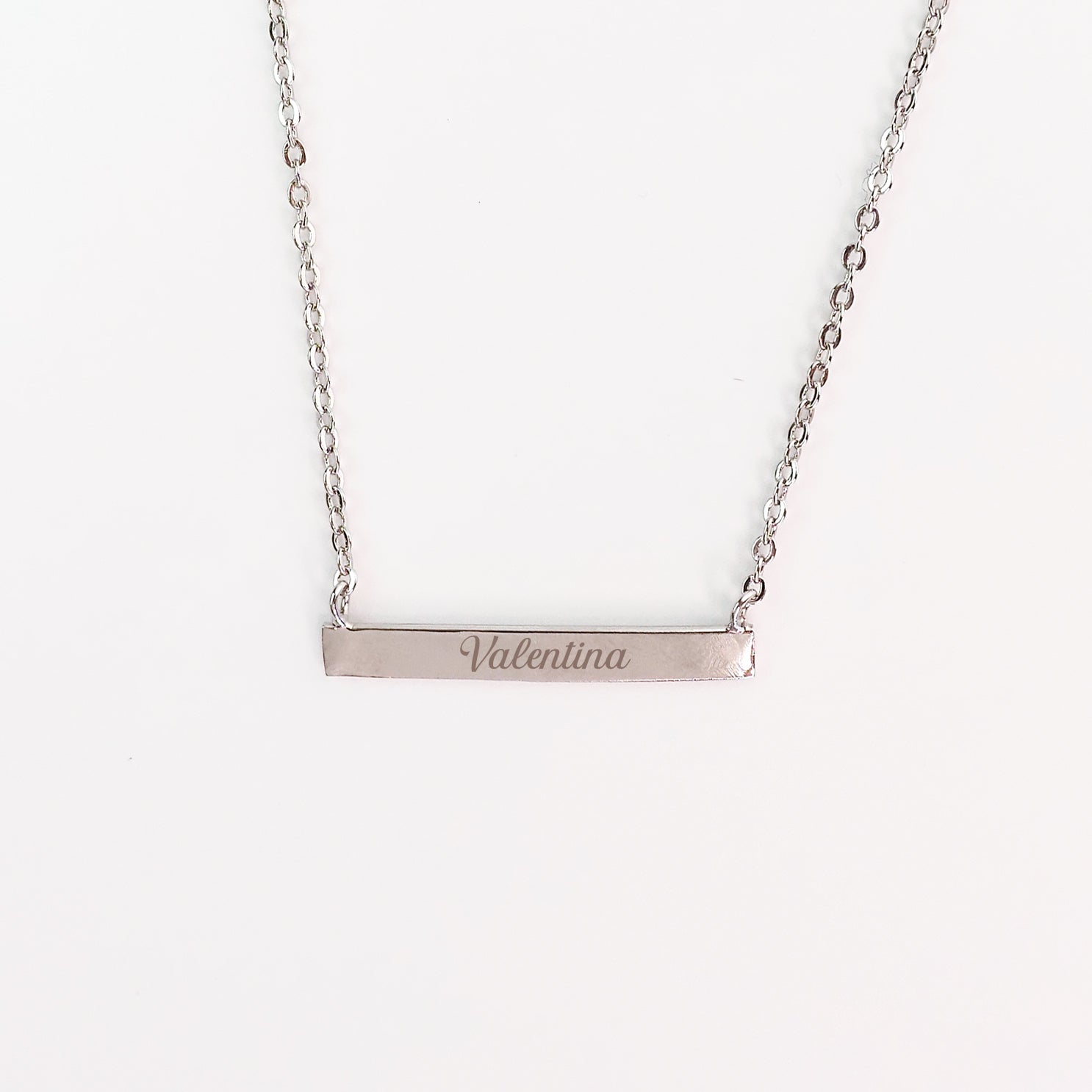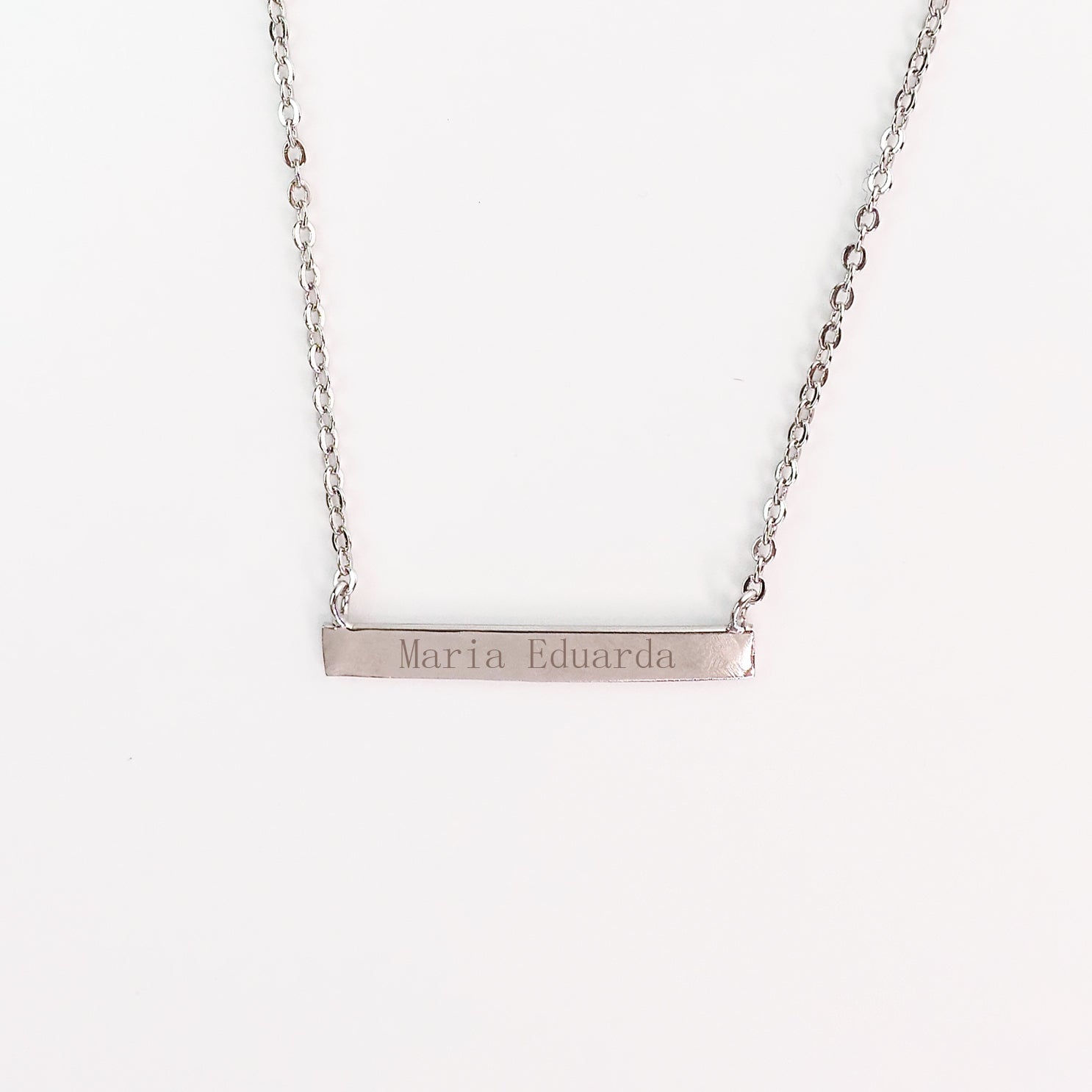 O colar nome pode ser feito com até 14 caracteres. É uma semijoia banhada em ródio branco, antialérgico e com 1 ano de garantia, ele é o presente perfeito ✨ por ser um produto feito especialmente para você não aceitaremos trocas ou devolução.