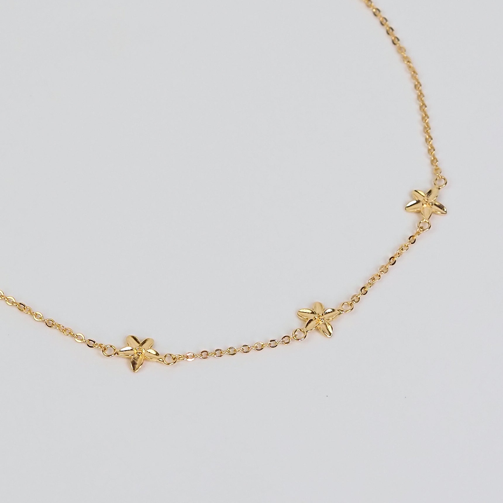 O Colar três flores de hibisco dourado, é uma semijoia que vem com um extensor de 5 cm, permitindo transformá-la facilmente em um colar de até 45cm. Banhada com 10 camadas de ouro amarelo 18K, esta peça delicada é livre de níquel e hipoalergênica, garantindo conforto o dia todo. Possui pingentes de flores, o que adiciona um toque delicado ao colar.
