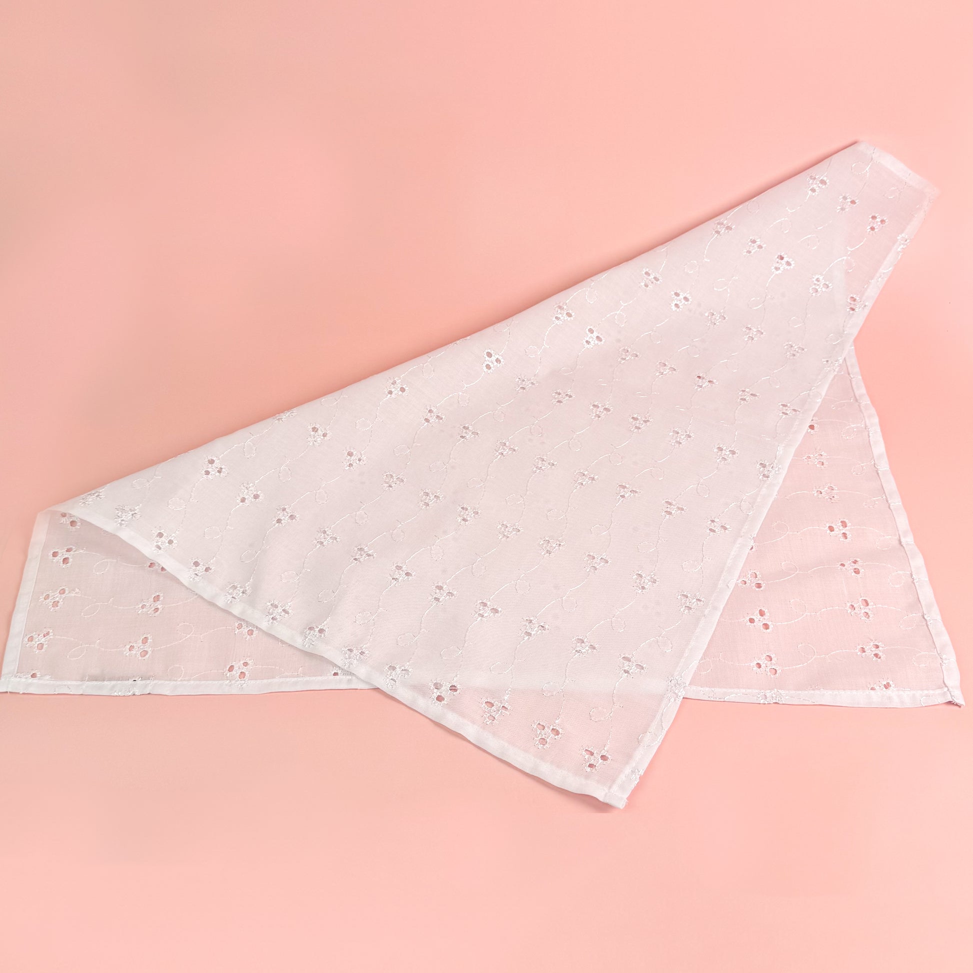 Conheça nosso novo Lenço, com tecido Laise com bordados e aberturas delicadas. Modelo quadrado com 50cm, perfeito para usar na cabeça em diversos penteados e deixar seu look mais estiloso.