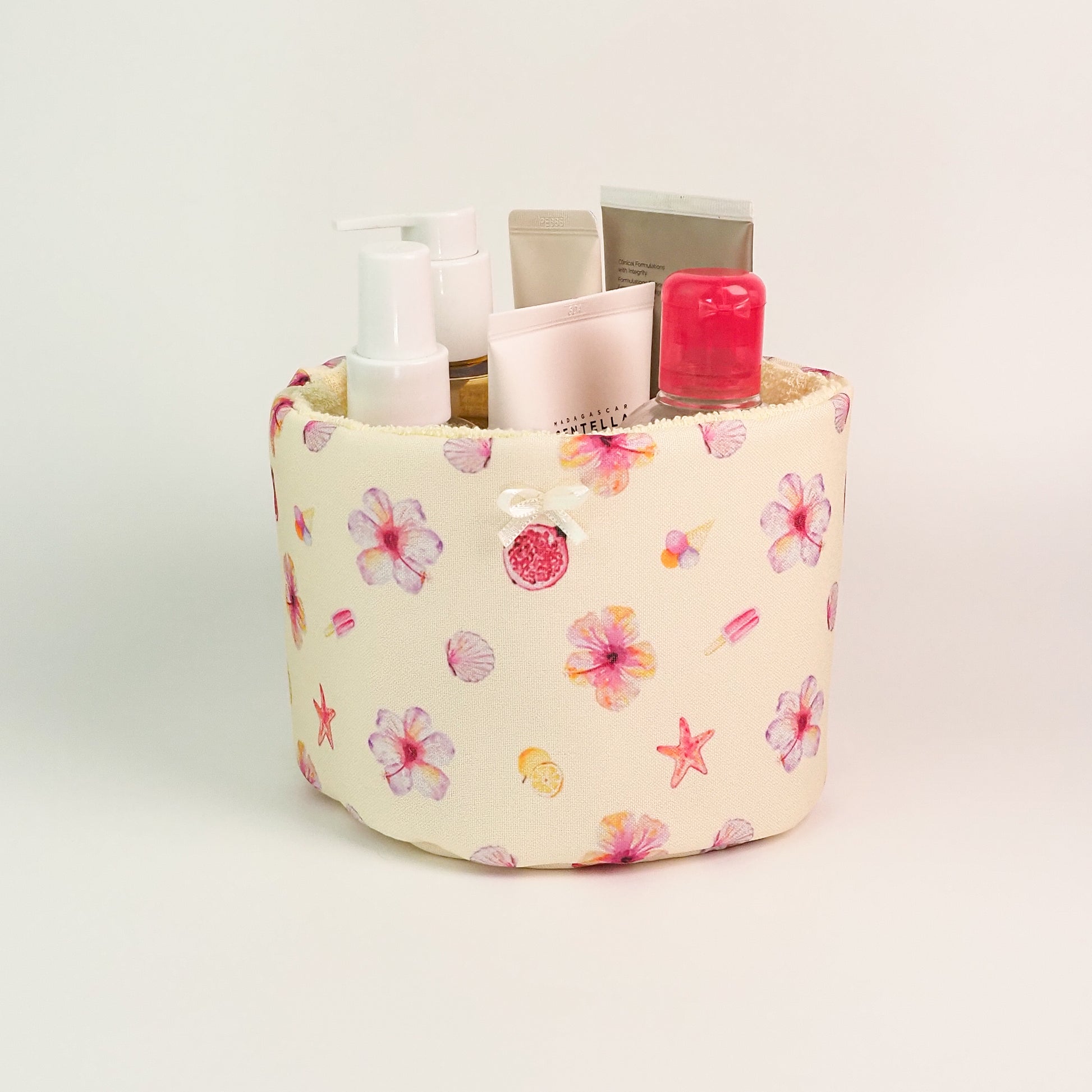 Organizador com forro atoalhado, perfeito para guardar seus itens essenciais de beleza para o dia a dia, decorando sua bancada ou penteadeira.
