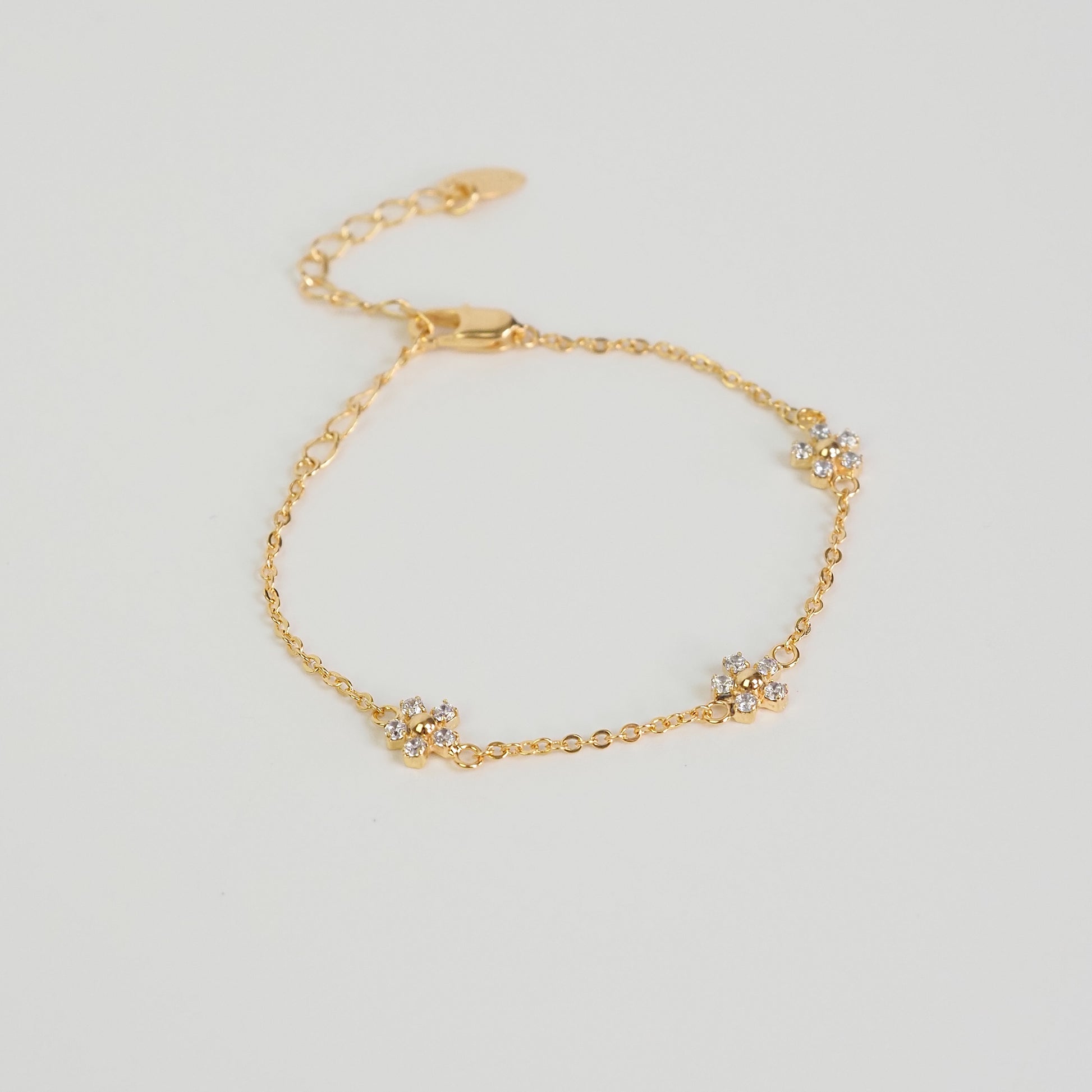 Nossa pulseira flor zirconia dourada é a semijoia perfeita para o dia a dia. Banhada em 10 camadas de ouro amarelo 18k e com zirconias formando 3 flores. Uma peça delicada, livre de níquel e hipoalergênica, garantindo total conforto e durabilidade. Perfeita para combinar com outras peças da Margê Atelier, ela adiciona um toque elegante ao seu visual, seja para um look casual ou ocasiões especiais.