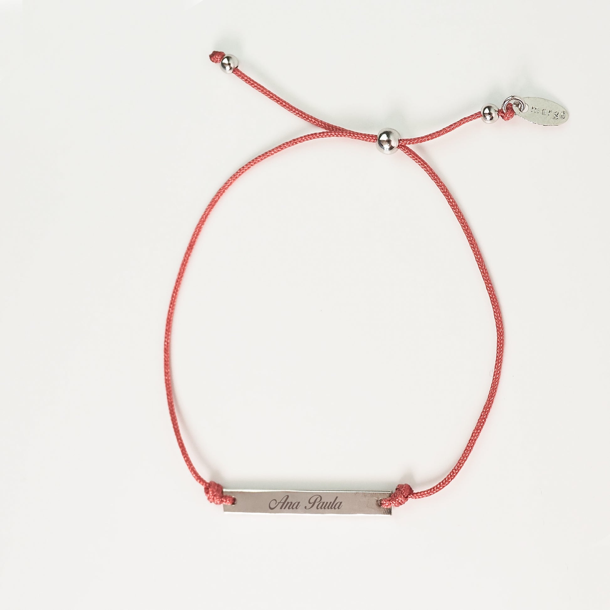 A pulseira pode ser feito com até 14 caracteres. É uma semijoia banhada em ródio branco, antialérgico e com 1 ano de garantia. Ela é um modelo ajustável feito com fita de seda, é o presente perfeito ✨ por ser um produto feito especialmente para você não aceitaremos trocas ou devolução.