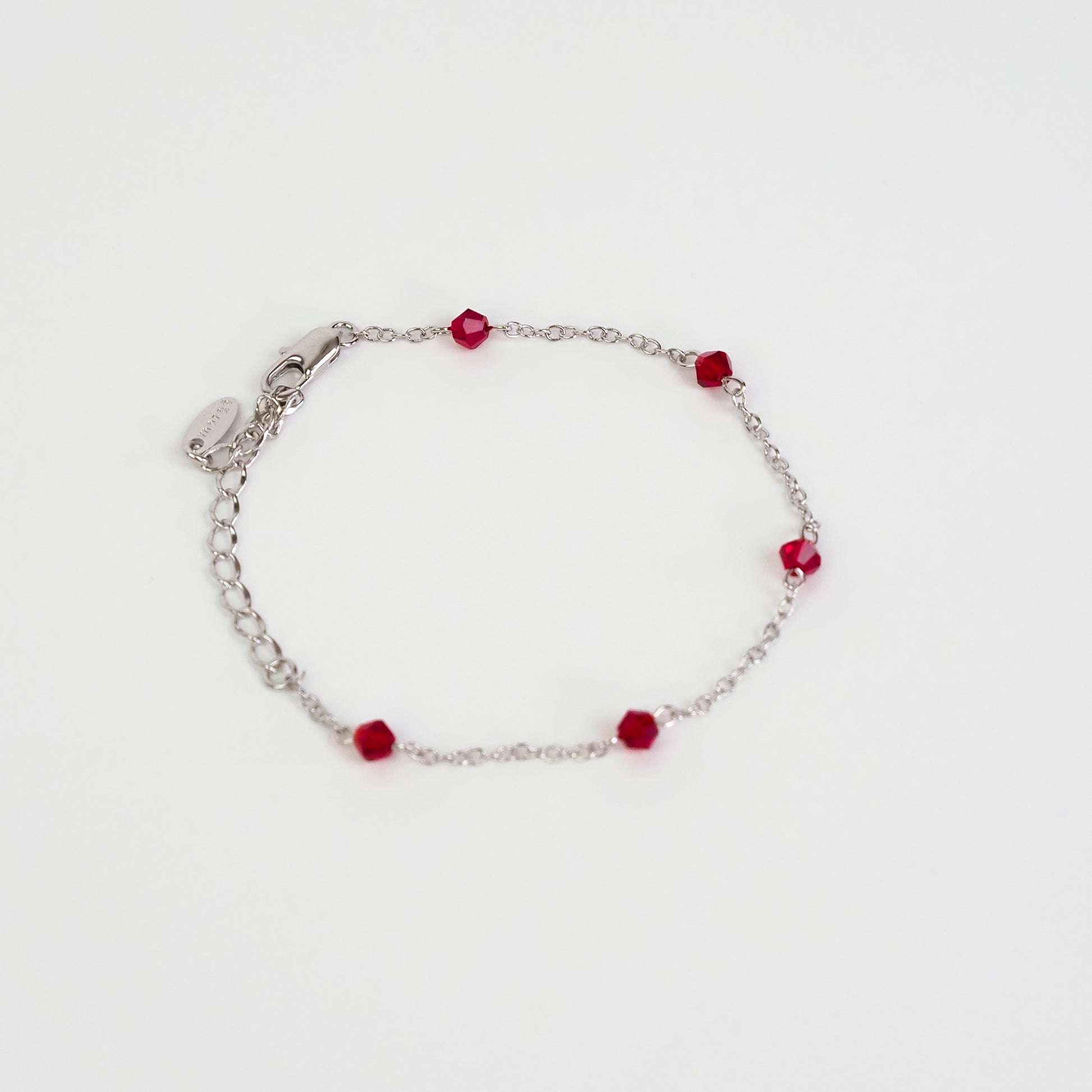 Pulseira pedrinhas rosa vermelhas prateada é uma semijoia perfeita para o dia a dia. Com pedrinhas no tom vermelho, banhada em ródio branco, a peça é delicada, livre de níquel e hipoalergênica, garantindo total conforto e durabilidade.