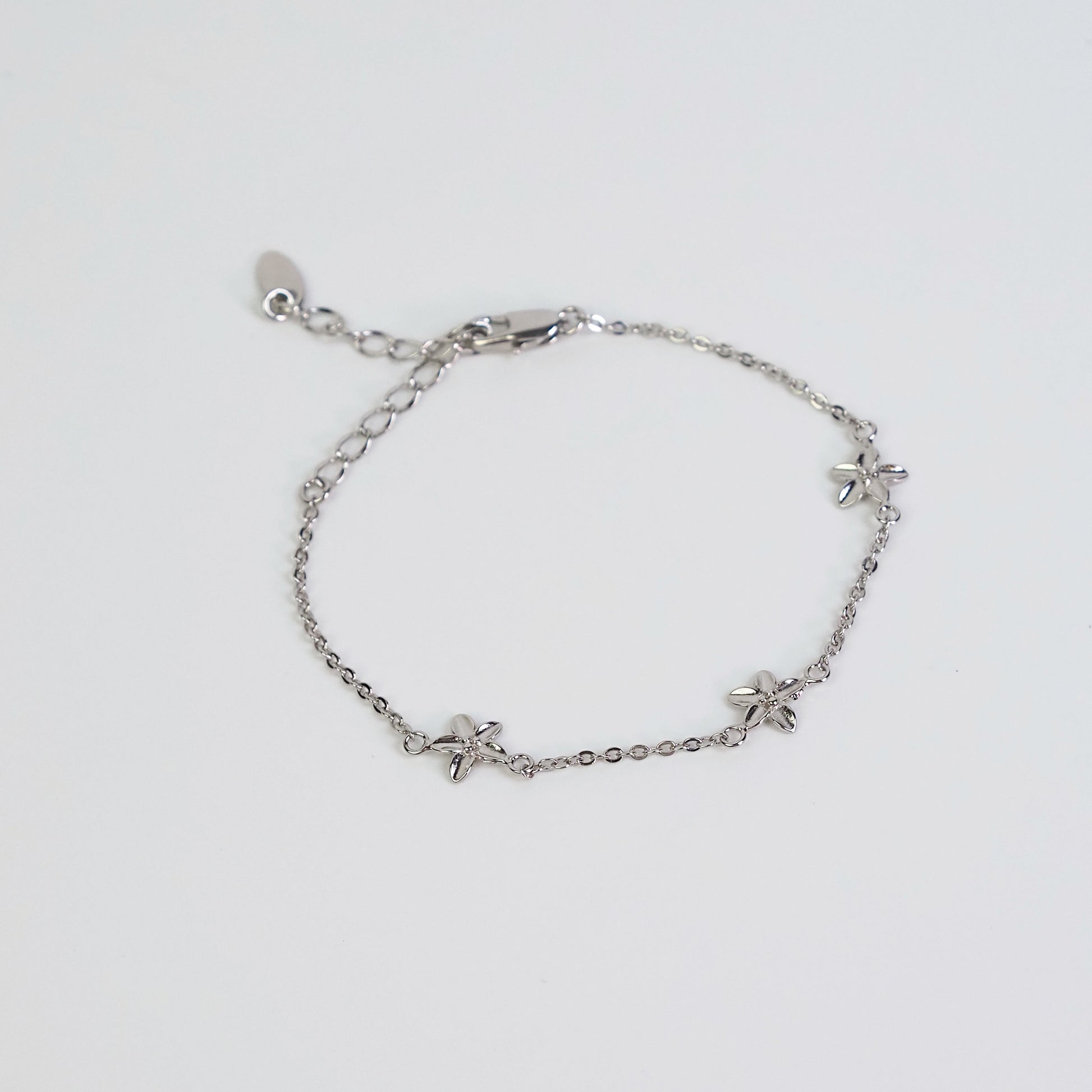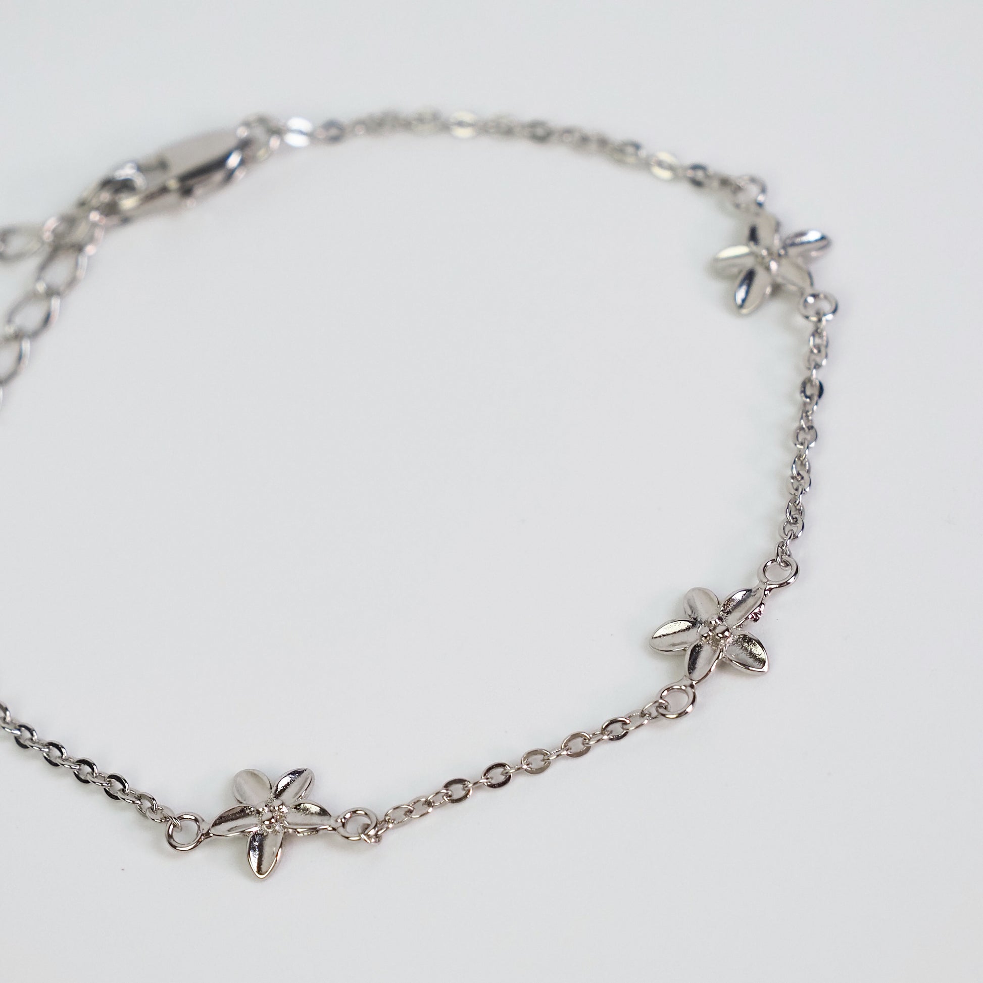 Nossa pulseira três flores de hibisco prateado é a semijoia perfeita para o dia a dia. Banhada em ródio branco, ela é uma peça delicada, livre de níquel e hipoalergênica, garantindo total conforto e durabilidade. Perfeita para combinar com outras peças da Margê Atelier, ela adiciona um toque elegante ao seu visual, seja para um look casual ou ocasiões especiais.